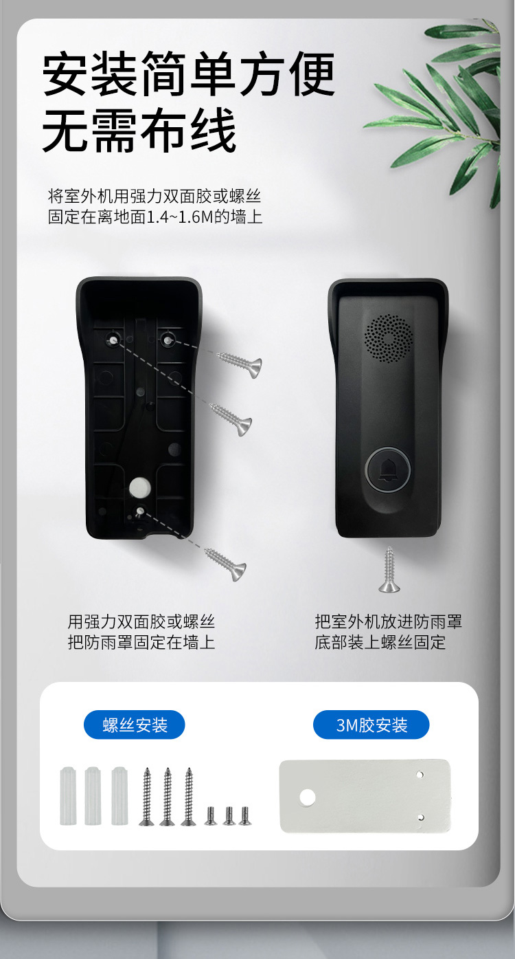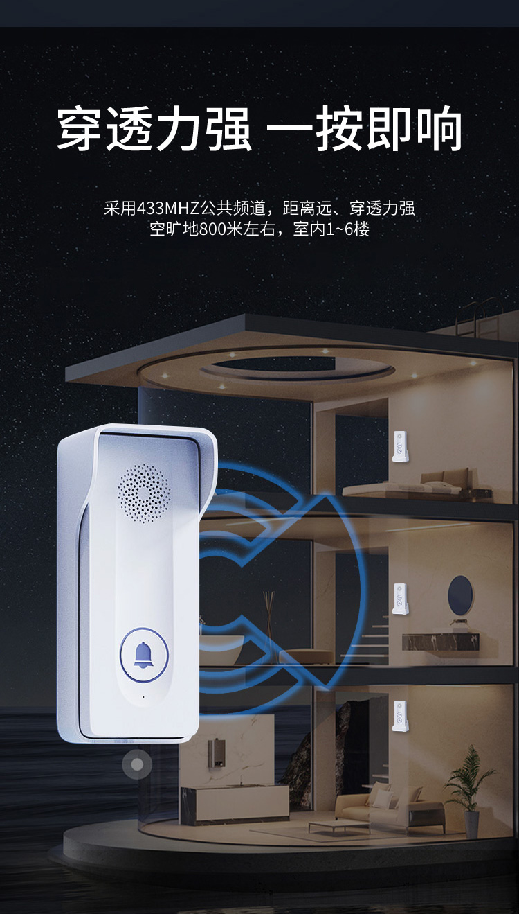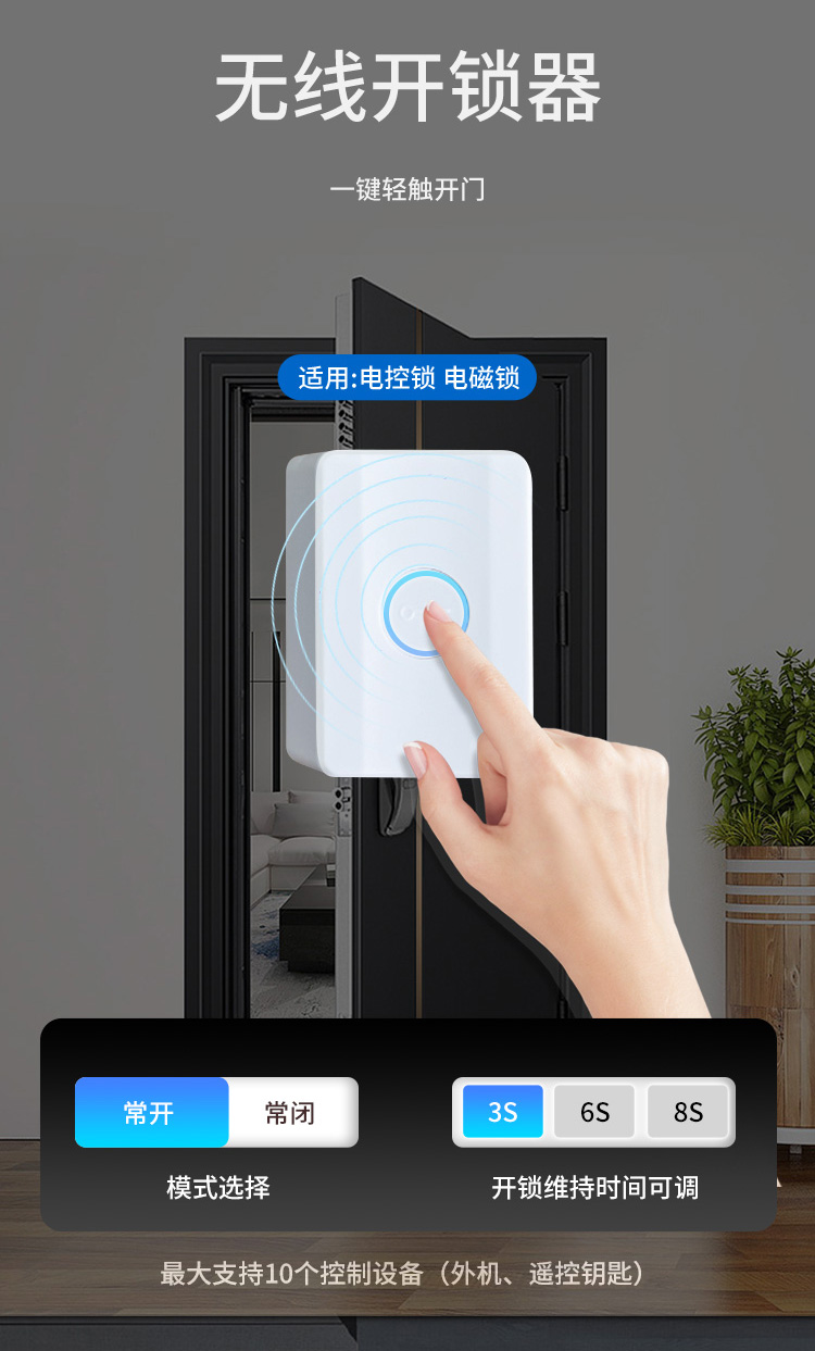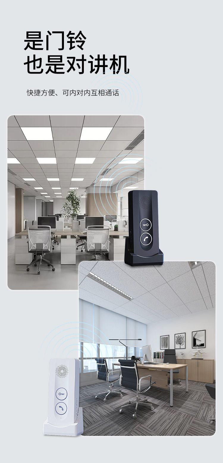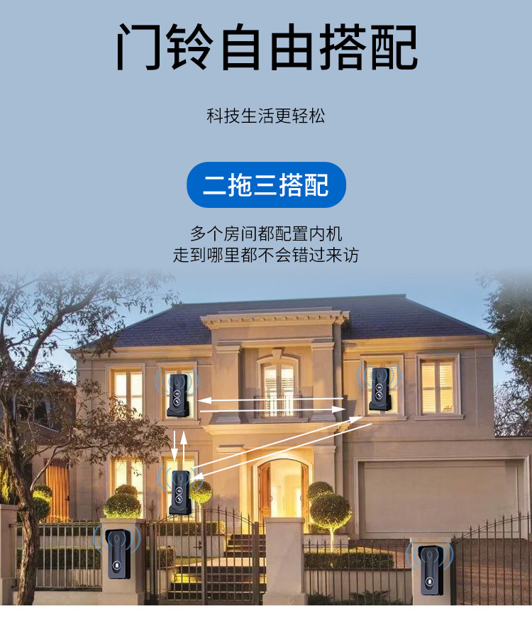 ●采用433MHz公共频道,距离远、穿透力强(空旷地800~1000米左右) ●18650电池供电,低功耗、待机长 ●室外机可用太阳能板充电 ●室内机充电座设计,Type-C充电接口,可与室外机电池轮换充电 ●38首音乐,4档音量可调 ●低电、充电状态指示灯提示 ●双向免提对讲 ●开锁采用433MHz无线开锁(此功能需选配开锁器) ●遥控钥匙开锁(选配) ●室外机具有IP55防护级别 ●安装简单方便